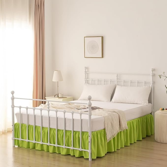 - 【Design】Lime queen bed skirt comes with a platform that goes between the mattress and box spring to keep it in place, ruffled around 3 sides looking simple and stylish